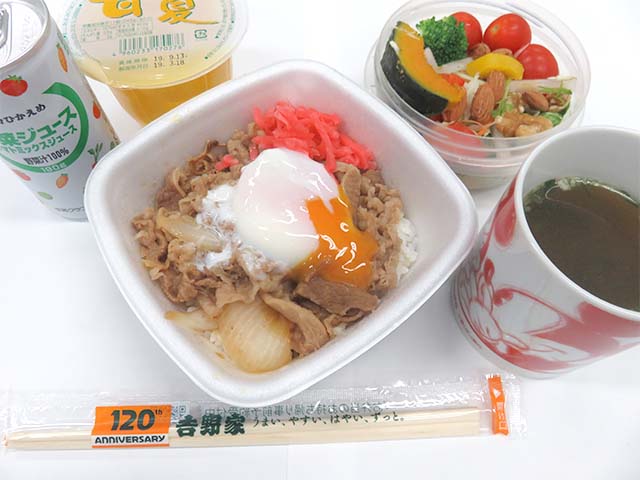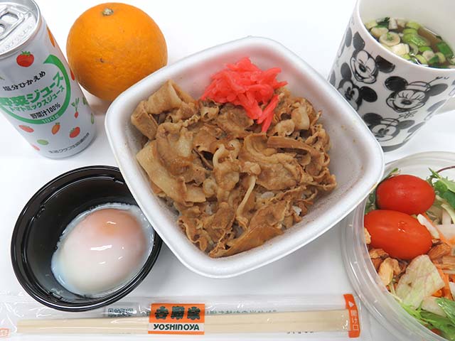 Mon:吉野家・テイクアウト牛丼(小盛)半熟玉子 しじみ汁☆